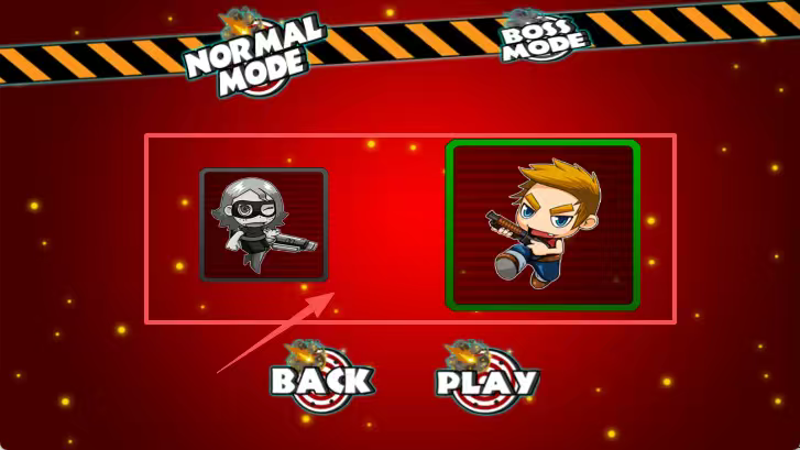 2、在游戏选择界面,左右有两个角色,选那个被绿色框框住的金发角色,点下方 PLAY 按钮开始,也能点 BACK 回到上一界面。