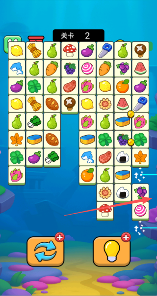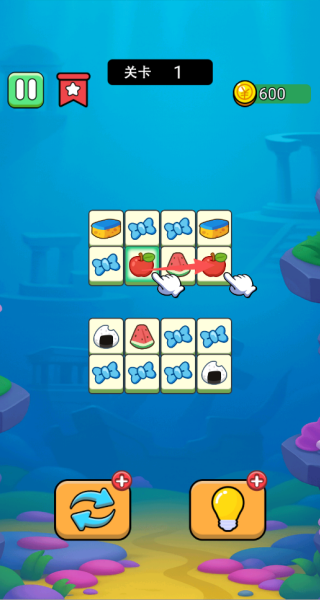 1、采用简单大方的游戏画风,搭配各类精致可爱的水果图案卡片,需找到相同卡片并消除开启轻松的消除之旅。
