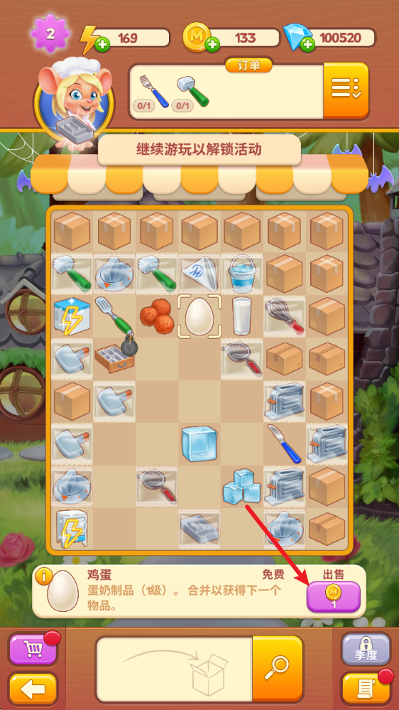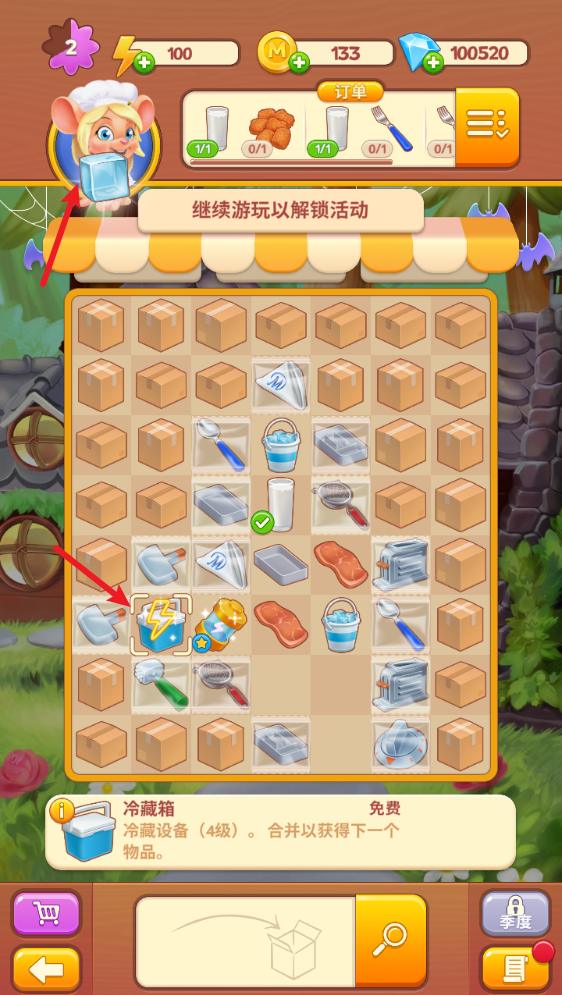 2、合并 - 把各种各样的物品组合成新的东西!几百种美食组合正等着你去探索!