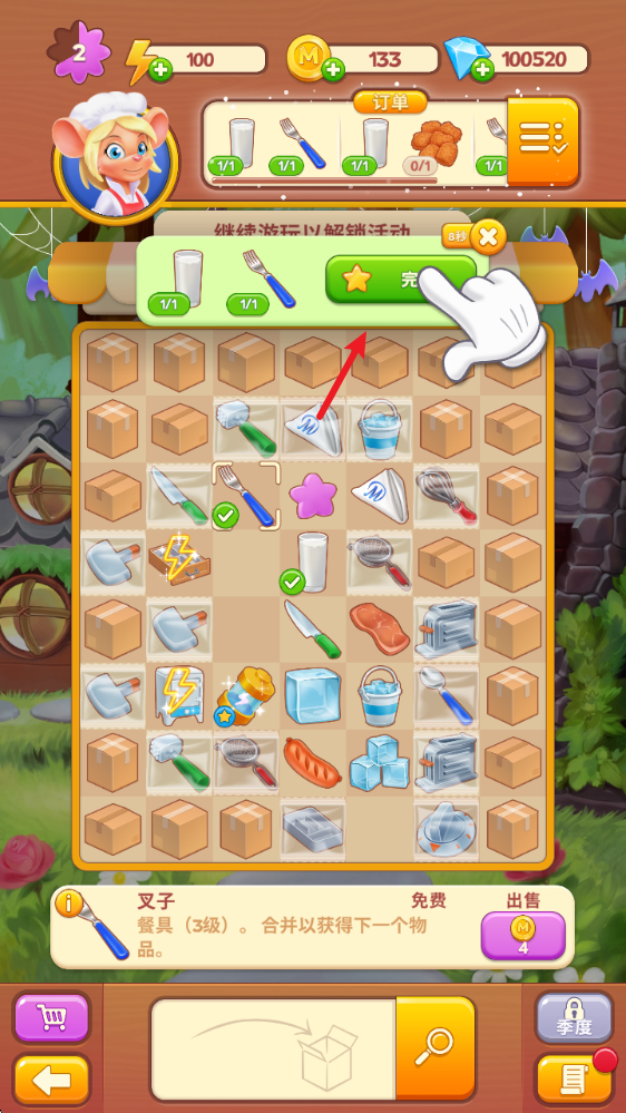 7、完成所有订单之后即可过关获得奖励。