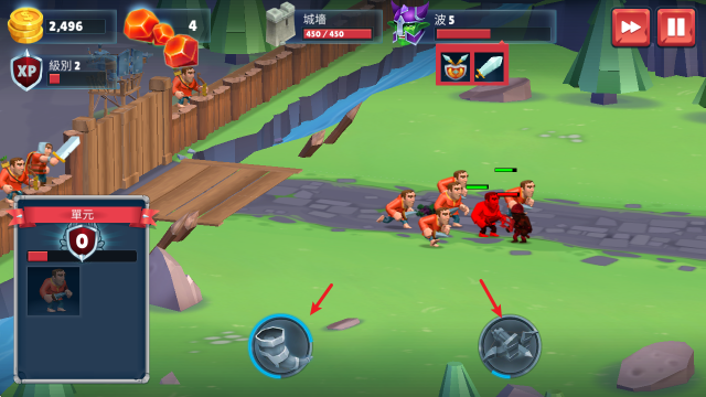 1、游戏分为的防御和入侵模式,防御模式下,点击左侧的士兵即可召唤。