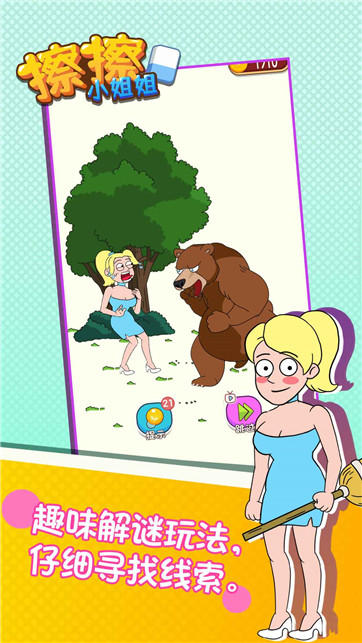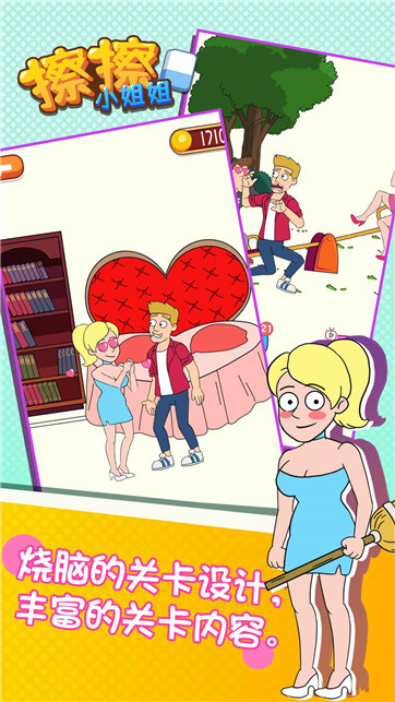 擦擦小姐姐游戏手机版是一款魔性十足的休闲解谜闯关游戏,以“擦除解谜”为核心玩法,结合奇葩脑洞与搞笑剧情,为玩家提供轻松烧脑的体验,游戏包含上千个特色关卡,每个关卡通过插画和故事呈现独特挑战,玩家需利用橡皮擦工具消除场景中的障碍,帮助小姐姐脱困。