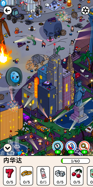 1、核心寻物机制要求玩家在限定场景内找出指定物品,通过精准点击完成收集,还提供了不同的道具帮助玩家闯关。