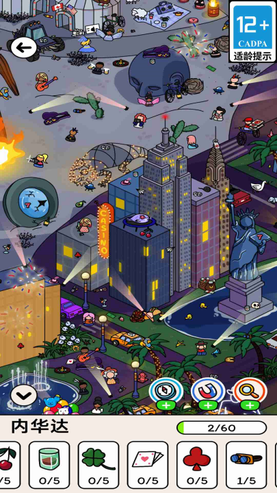 3、进入关卡之后,玩家需要按照画面下方的物品要求进行查找。找到所有物品方可闯关。