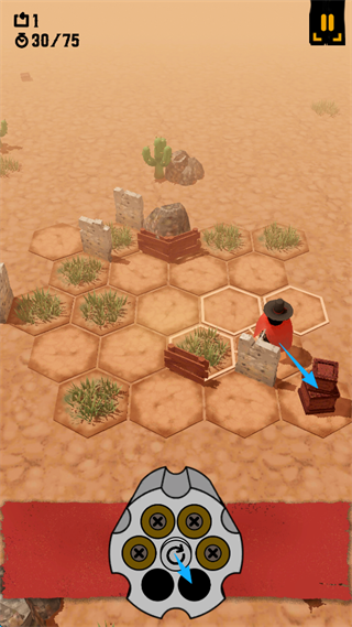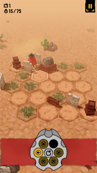 2、屏幕下方的弹仓不仅仅是标识子弹的方式,还是可以攻击的方向,并且牛仔射击一次,弹仓就会转动一次。