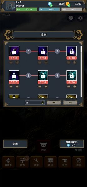 4、点击技能界面,可以在这里加点冒险者的技能加点;