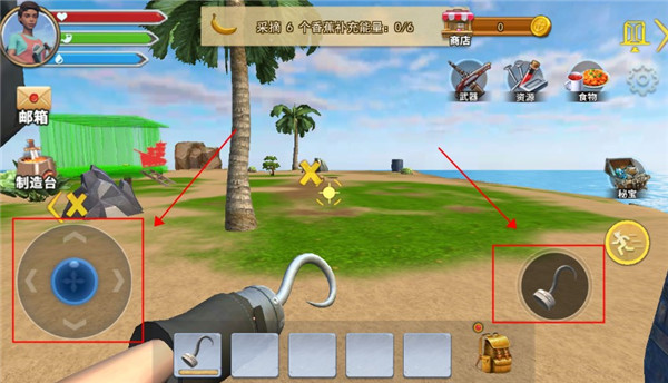 3、左边摇杆用来控制角色移动,右边钩子用来攻击