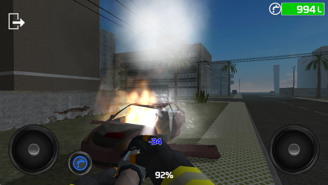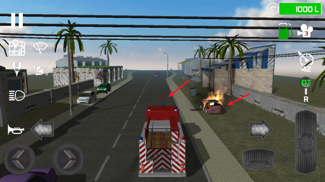 2、开着独一无二的消防车前往火灾地点救援,你是可以及时的来扑灭这里的火灾,去启动高压水枪进行喷洒作战;
