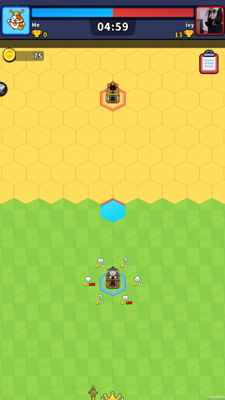 六角力量的游戏地图由六边形格子构成,玩家可以通过点击主塔周围的六边形格子来进行战略部署。每当玩家选择使用某个格子时,都会随机召唤出独特的猫塔,这一机制增添了游戏的不可预测性和趣味性。每次对战都可能因为召唤不同的猫塔而导致局势瞬息万变,让玩家必须时刻保持警惕,灵活调整战术。