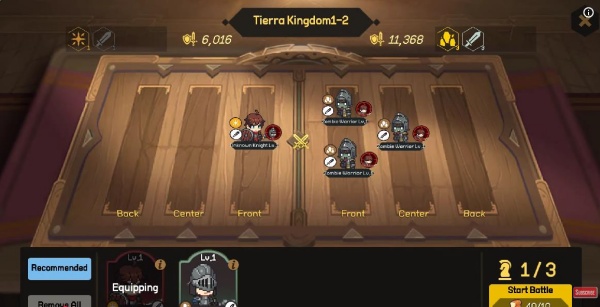 2、通过冒险关卡收集金币与装备,解锁更多骑士角色,组建多元阵容。