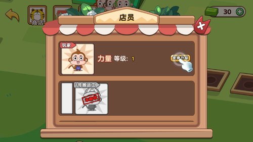 3、进入店员管理界面,点击力量属性旁的免费升级按钮,提升角色基础经营能力。