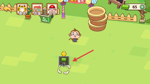 2、在猴子集市区域收集散落的金币,积累初始资源用于后续升级和商品采购支出。