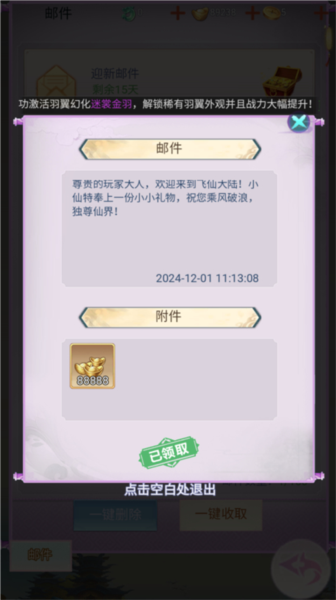 1、创角进入游戏即刻领取专属礼包,以及邮件中的88888元宝资源