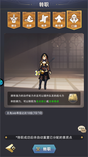 5、口师:后期可转职为圣光骑士或圣拳尊者。