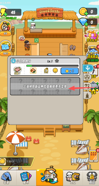 4、游戏中,你需要穿梭于不同的神秘的海洋去钓鱼,将收获转化为美食售卖,通过经营逐步打造专属寿司餐厅。