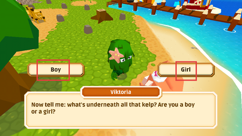 4、面对角色创建提问时,选择Boy或Girl确认性别,完成角色设定并进入正式游戏世界。
