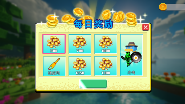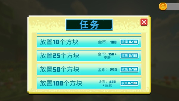 2、点击任务,在世界中放置不同数量的方块就可以获得相应的金币奖励。