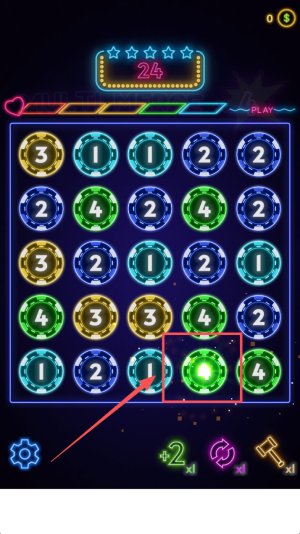1、看到五颜六色的数字圆片时,直接点底部PLAY按钮开始玩,注意看第一排数字是31242。