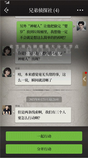 4、差之毫厘:在“神秘人季柯?”剧情中,选择“说出自己对于突破问题的思路”;随后在“仓鼠的担忧”剧情中,选择“分开行动”,然后选择“我去找神秘人”,最后记得不要达成“讷口少言”结局。