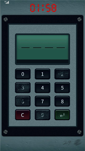 1、给我10秒:在10秒内完成密码破解。破解方法是:观察发现密码键盘上有四个键盘有明显磨损痕迹,而在密码盘右下方又给出了前2位数,因此后2位数至多只需要试2次即可。