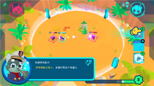 6、玩家在战斗的时候虽然不能控制机器人,但是可以使用机器背包能力支援你的机器人,能力会消耗能量,但能量会随着时间的推移而自动恢复;点击右方的【导弹】图标,将它拖进去,就可以支援机器人;