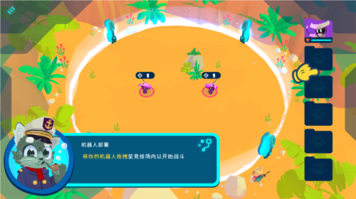 5、点击自己的机器人(右边最上面那个),将它拖进竞技场;机器人就会自动攻击离它最近的敌人,这里我们要注意的是,机器人一旦部署,你将无法控制它们;