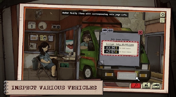 2、叙事模拟游戏:在应对日益加剧的紧张局势和有限资源的同时,检查车辆、证件和身份信息。