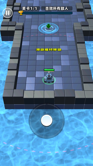 1、进入游戏,滑动摇杆移动起来,到达箭头处。