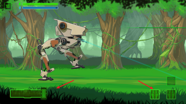 2、进入之后,拖动左侧的拉杆,可以进行瞄准,选择右侧的武器即可进行攻击。