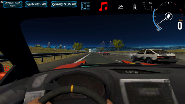 1、游戏所有车辆全部免费使用,可以通过点击屏幕左右两侧更换驾驶车辆,屏幕左下角的为东京高速公路,右下角则为东京夜景街道,屏幕左侧则为是否启用驾驶假人。