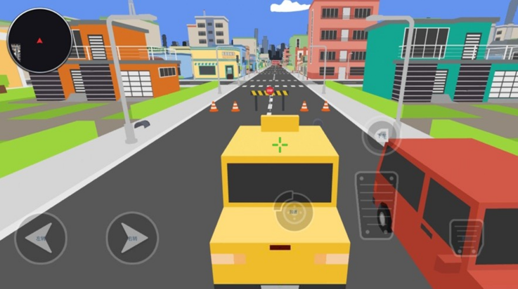 3、驾驶黄色车辆时,通过左右方向键控制行驶方向,避开道路上的路障和其他车辆,沿着道路中央行驶以保持稳定。