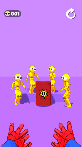 3、击中炸药桶让其爆炸,从而消灭所有的木偶人。