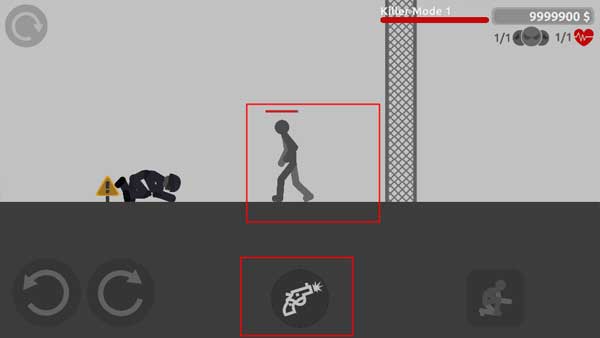 5、“Killer Mode”模式就是在跑酷的基础之上,增加了需要对战的敌人以及武器按钮,将敌人打趴同时还要跳跃到下一个地方即可。