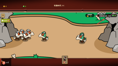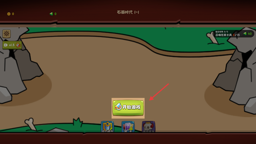 1、点击屏幕中央的开始游戏按钮,进入石器时代关卡,正式开启大鹅军团的塔防冒险旅程。