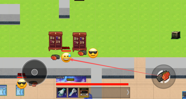 3、左侧的按钮可以控制着角色进行移动,我们在有物资的地方点击右侧的手,即可完成搜集。