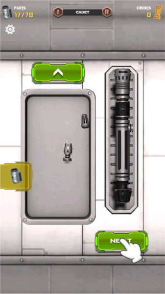 4、放置好该零件后,点击下箭头按钮再次将其他的零件拖到到右边组成光剑手柄;