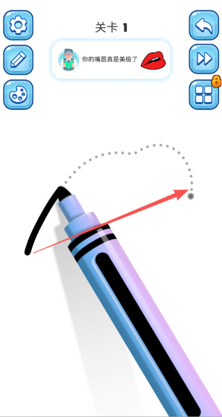 1、点击拿起画笔,然后沿着虚线进行绘画就可以了,直至终点。