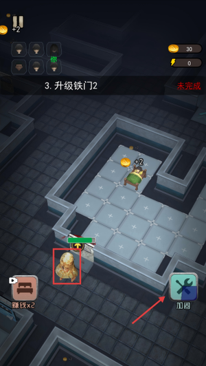4、当猛鬼攻击宿舍铁门时及时点击加固按钮,提升门体耐久度防止被快速破开。