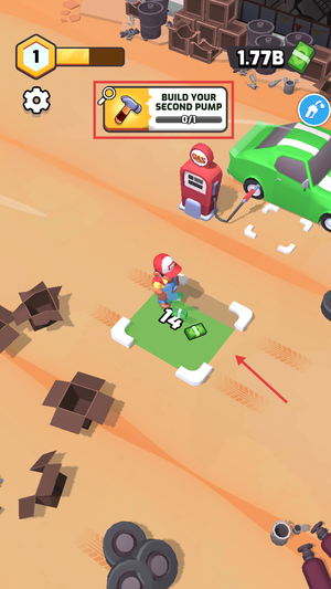 3、打开建造菜单,花费14单位货币可以在绿色标记区域建造第二个油泵,提升同时服务车辆的数量与效率。