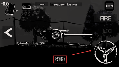 4、当界面显示READY时,转动右侧方向盘调整炮口角度,确认无误后点击FIRE按钮发射炮弹攻击目标。
