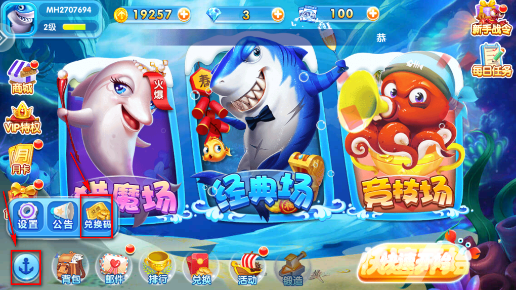 1、在本站下载安装好天天爱捕鱼高倍版,运行游戏,每日签到领取奖励,vip还可以翻倍;