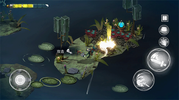 战斗系统主打“轻攻击+翻滚”的极简操作,但策略深度藏在节奏判定中:BOSS战需根据音乐鼓点闪避,蓄力斩击时机影响连招倍率。手残党可专注解谜,硬核玩家则能挑战无伤通关成就。