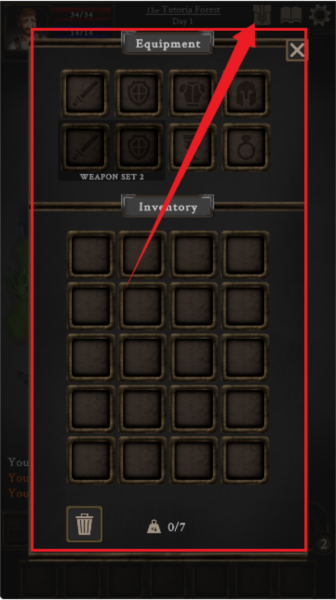 5、然后进入到游戏界面中,这是一个岛屿上,点击右上角的【书包】按钮可以查看自己背包中的道具资源,