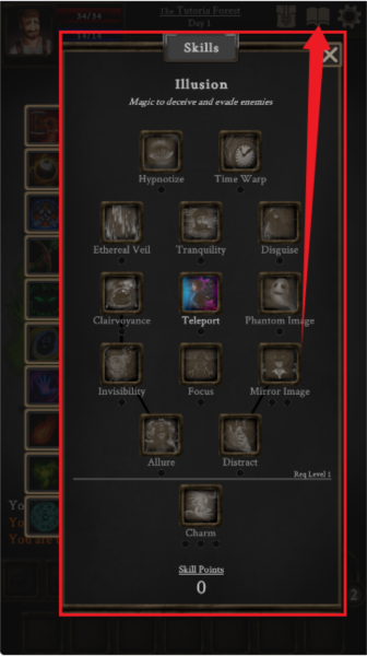 6、点击【书本】的图标,如图所示,可以查看自己的技能点。