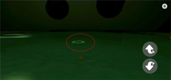 7.切换【飞鱼】,利用飞鱼的特点找到地面上的水框,水框上有【银杏叶】标志比较好找,有了水框后去接应同伴。移动水框来到传送电梯这儿,找【银杏叶】标志。让【食人鱼】咬断装置,借助电梯来到上层。