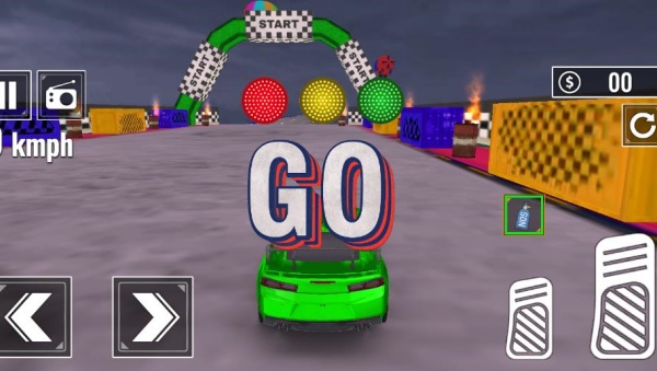 1、登录进入游戏,点击左右键控制汽车的方向,点击右下方的油门就可以开始进行驾驶了。