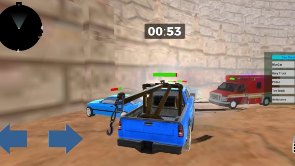 4、操纵虚杆控制车辆前进,并控制汽车行驶的路线,到达指定位置开始进行救援任务。