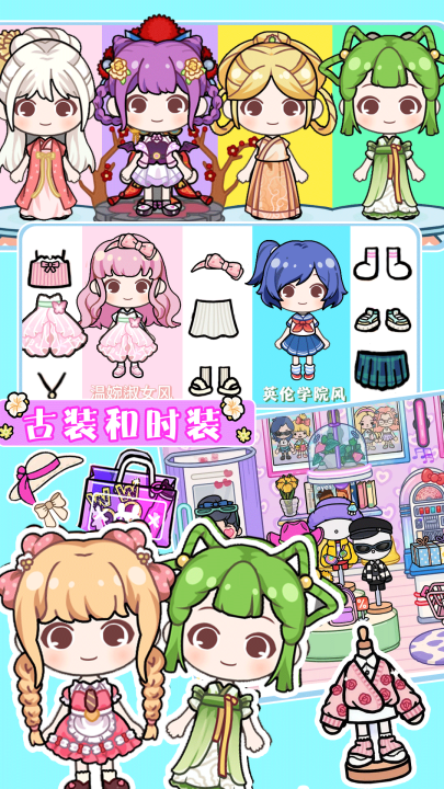 米加古风客栈模拟器游戏是一款超级应用程序,你可以在这里创建自己的世界,并表演你喜欢的任何故事。我们少会推出70个地点,140个角色,150只宠物,700套衣服裤子和更多的配饰;我们会在每个月进行更新,或推出更多的地点,让你创建属于自己的世界!完全自定义衣服,发型,神奇的妆容让你自定义出真实的自我,创作出属于你的故事!