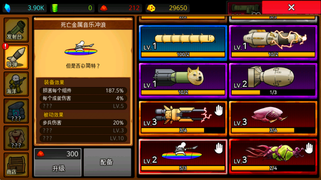 5、在发射台界面可以更换不同的发射器,并通过升级来加入更多配件。