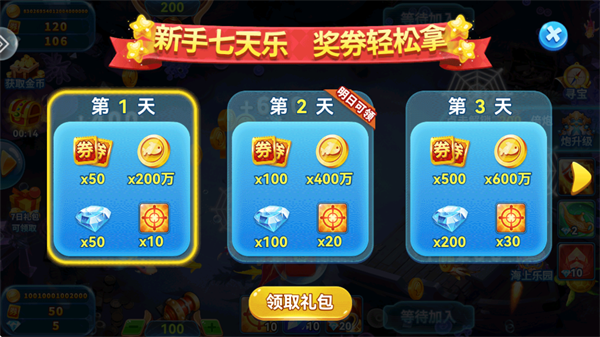 3、捕鱼淘金者百万金币免费领,送你上千炮,各种神秘大礼等你拿;